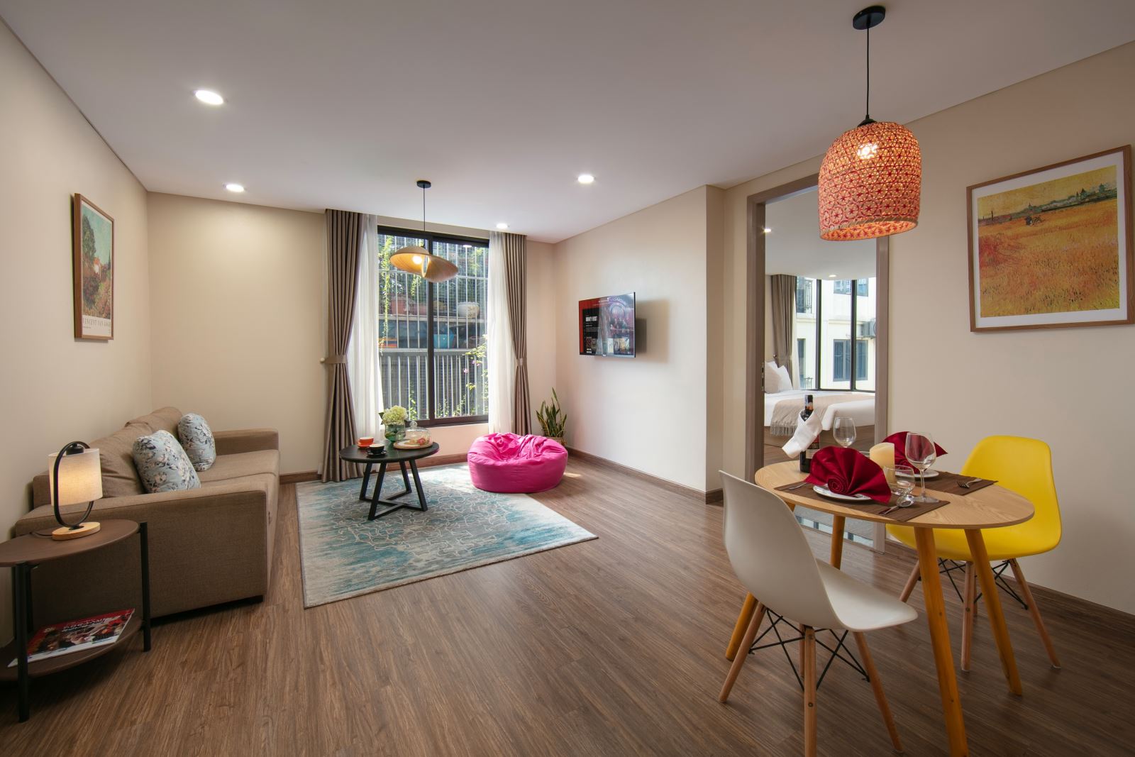 Loại hình lưu trú này phù hợp cho du khách, gia đình lẫn khách công tác nhờ không gian rộng, tiện nghi đầy đủ, vừa nghỉ dưỡng vừa làm việc. Những căn hộ ở tầng cao, có ban công hoặc cửa kính lớn cho phép quan sát pháo hoa từ nhiều hướng, mang đến trải nghiệm trọn vẹn ngay tại phòng.